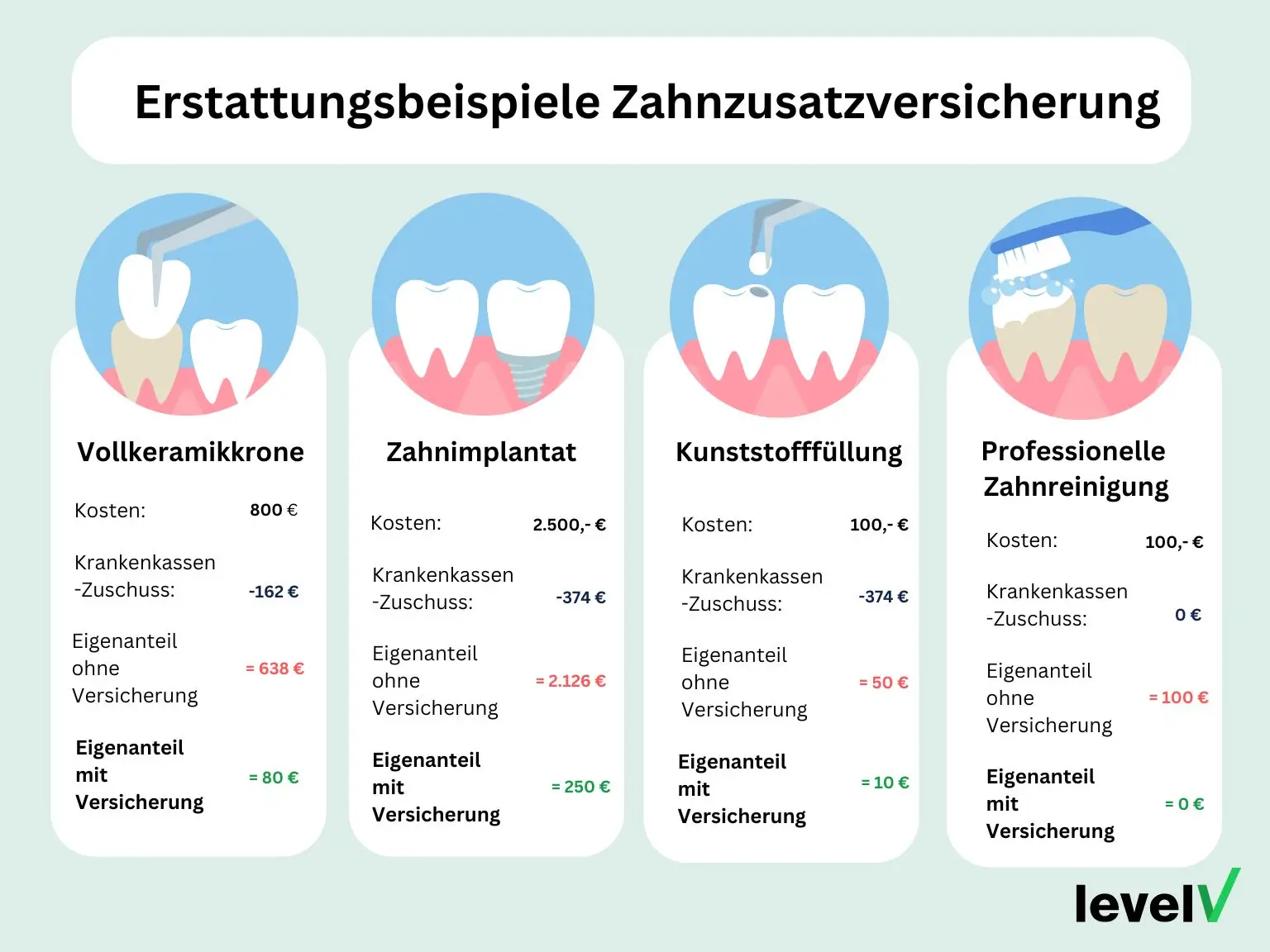 Basic | Zahnfüllungen, einfache Kronen | 6 Monate | 10€/Monat |